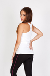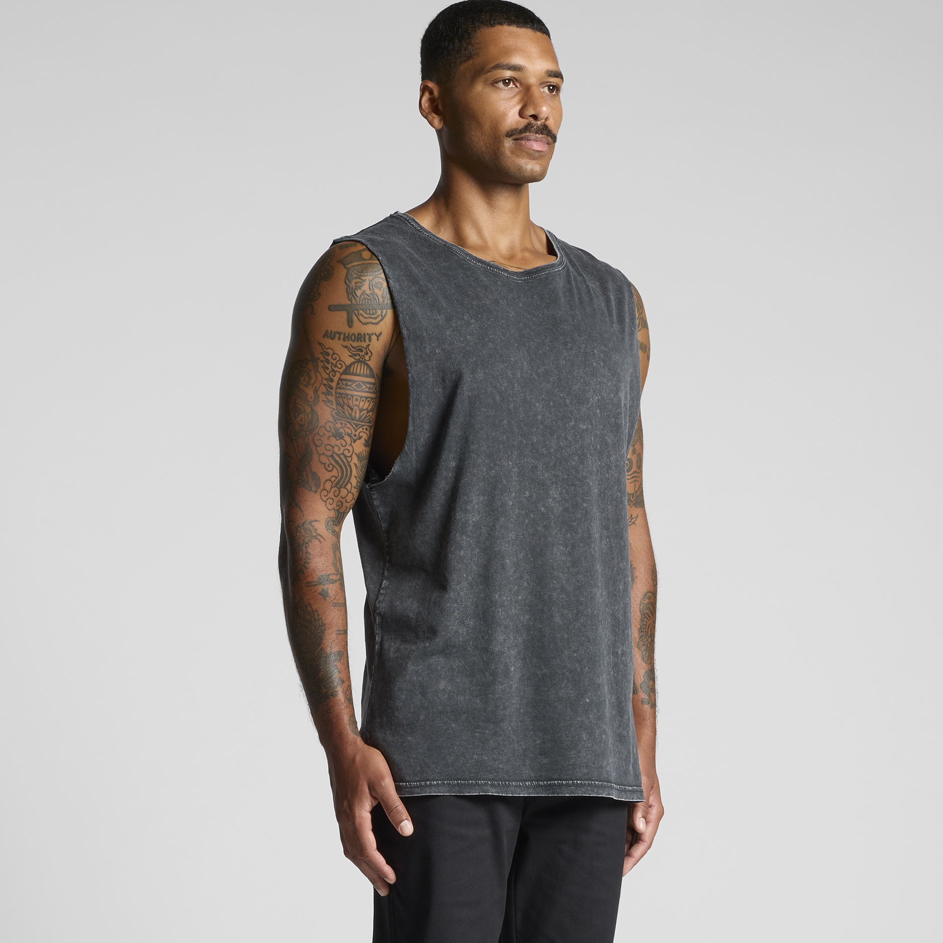 Sleeveless tank, raw armhole edges, stone wash finish with a worn look