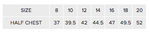 | Half Chest (cm) | 37 | 39.5 | 42 | 44 | 47 | 49.5 |