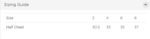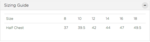 | Size | 8 | 10 | 12 | 14 | 16 | 18 |